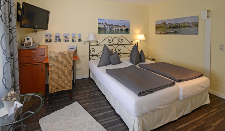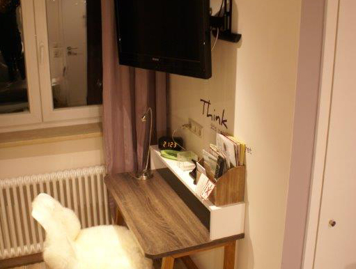 Minibar-Schreibtisch-FlatTV -Regenschirm -Haussschuhe-Schuhlöffel